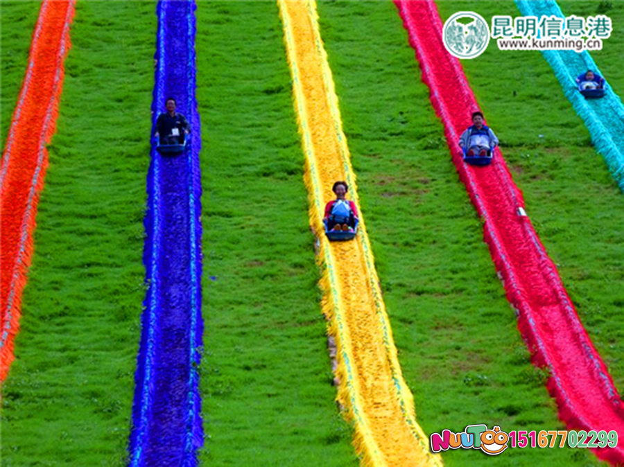 七彩滑道作為旱雪滑道的一個(gè)分支,由滑雪運(yùn)動(dòng)延伸而來(lái),適用于娛樂雪圈滑道。色彩鮮艷的室外組合使體驗(yàn)者不僅能享受旱雪的刺激,還能享受七彩的配色,看起來(lái)像彩虹掛在山坡上,讓游客產(chǎn)生彩虹中的幻覺,從而吸引游客。