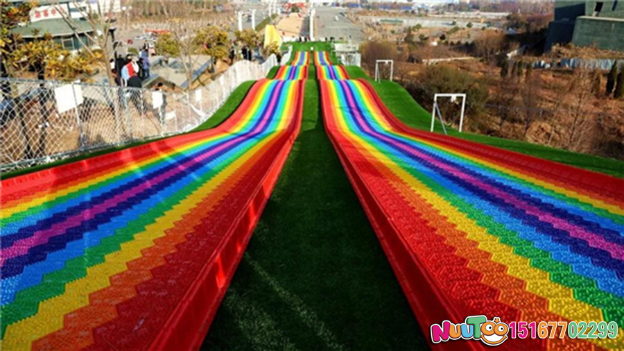 七彩滑道屬于大型游樂設備,占地面積較大,但是它對土地面積的利用不高,周圍空閑出來的場地可以做其他游樂項目,這樣可以形成一個一體化的游樂空間。河南七彩滑道的長度可以達到一百多米,高度在二十米左右,這套設備適合在城市郊區(qū)的荒山地帶建造,土地租金便宜,而且空曠,適合建造這種大型的游樂綜合體。彩虹滑道周邊可以配套餐飲,小型游樂設備,農(nóng)家樂,田園風光等,和不同的主題組合起來都可以。