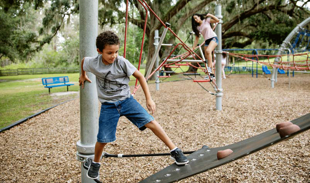 孩子們一般都喜歡跑跳攀爬,這是天性所致,而游樂園里的攀爬器材是需要全身心投入的運動,其實是手腳并用,在攀爬過程中他們需要控制好自己的身體,需要有平衡感,需要有方向感,需要有一定的力量,才能完成整個體驗,這對身體鍛煉方面就形成了積極的可觀作用。