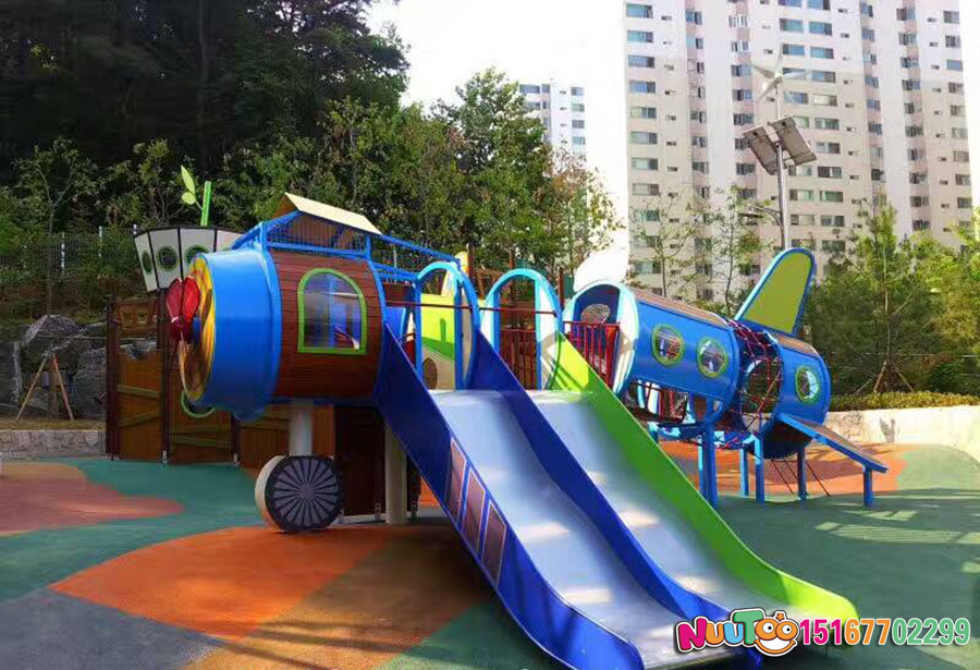 沈陽萬科飛機游樂場景觀是于2018年上半年在樂圖游樂的安裝幫助之下正式面向社會群體,其中除了定制飛機非標(biāo)景觀游樂還有各種組合性質(zhì)的滑梯項目,全場占地700平米,是位于一個小區(qū)內(nèi)的公共項目。主要針對的人群是小區(qū)內(nèi)的小孩子群體,在周末以及晚上總會有很多小朋友來到這里享受美好的童年時光。