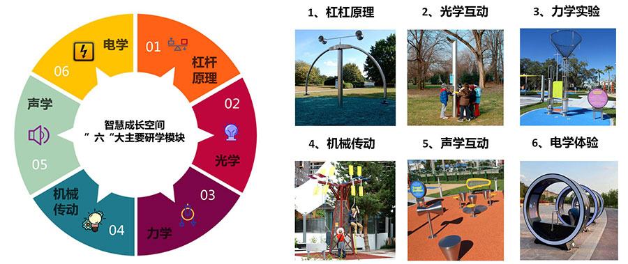 智慧成長空間研學樂園基于游戲中學習的理念,把力學、光學、聲學等物理實驗通過游戲游樂化,整合成研學基地