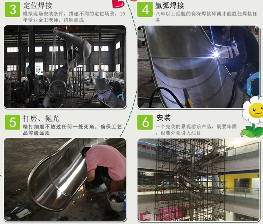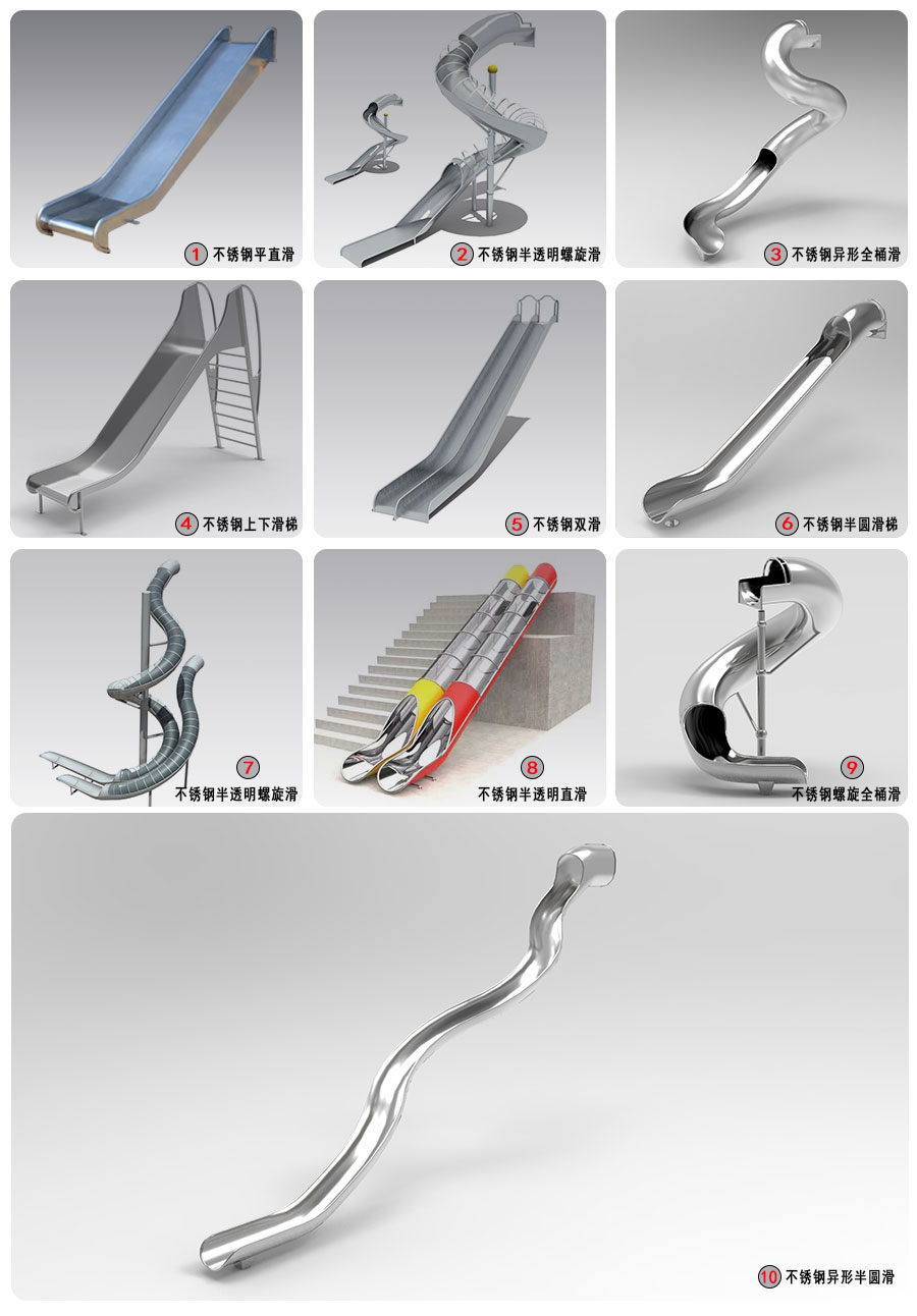 不銹鋼滑梯按形狀可以分為:不銹鋼管平滑梯、不銹鋼半透明螺旋滑梯、不銹鋼管異形全桶滑桶、不銹鋼上下滑梯、不銹鋼管雙滑、不銹鋼半圓滑梯、商場(chǎng)大型不銹鋼半透明螺旋滑梯、不銹鋼半透明直滑梯、不銹鋼螺旋全桶滑梯、不銹鋼異形半圓滑梯