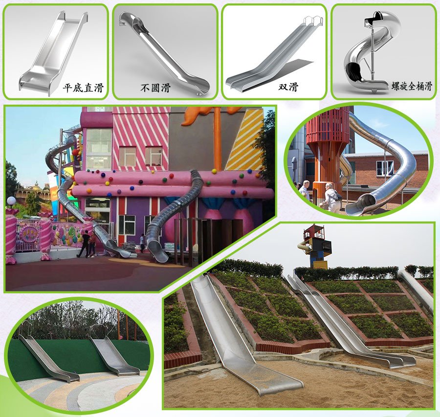 【產(chǎn)品名稱】室內(nèi)外螺旋形半透明304不銹鋼滑道組合 【產(chǎn)品規(guī)格】按客戶場地定制 【產(chǎn)品特點】GS認證,耐磨,無毒 【產(chǎn)品用途】螺旋形半透明304不銹鋼滑道能培養(yǎng)兒童的獨立的個性、鍛煉身體、增加膽識。 大型不銹鋼滑梯和小型不銹鋼滑梯的用處可以從形狀、大小、復雜水平、適用人群等幾個角度剖析: 1.形狀大小 大局部的大型不銹鋼滑梯的規(guī)格次要在8-10米左右,甚至更大,次要安頓于較大型的社區(qū)、校園、幼兒園以及公園里供年歲較大的孩子游樂。而小型的不銹鋼滑梯規(guī)格次要是5米左右及以下的,次要用處于幼兒園,供年歲較小的一些小孩子玩耍,另外商品設計上也是有區(qū)別的,小型滑梯的設計分明要愈加充溢童趣一點,大型滑梯則不只可以作爲游樂設備,也有一定的健身功效。