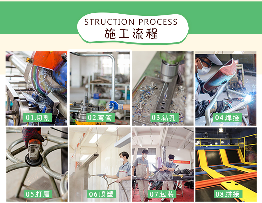 1、主架:鍍鋅管、專(zhuān)業(yè)巖板 2、輔材:PVC 3、滑梯:LLDPE |