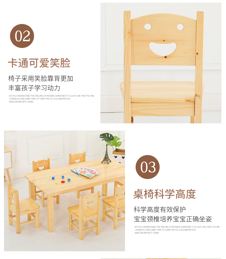 本公司所產(chǎn)實(shí)木兒童桌椅造型美觀、材質(zhì)環(huán)保、安全耐用,適合幼兒園、親子園、圖書館、早教中心、商場等幼兒活動(dòng)場所。